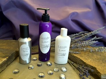 Our Lavender Wynde Hand & Body Lotion is our signature lotion. Our lotion is manufactured here at the farm from all natural ingredients including almond, jojoba, avocado, shea oils, vitamin E, aloe vera and essential Oil.